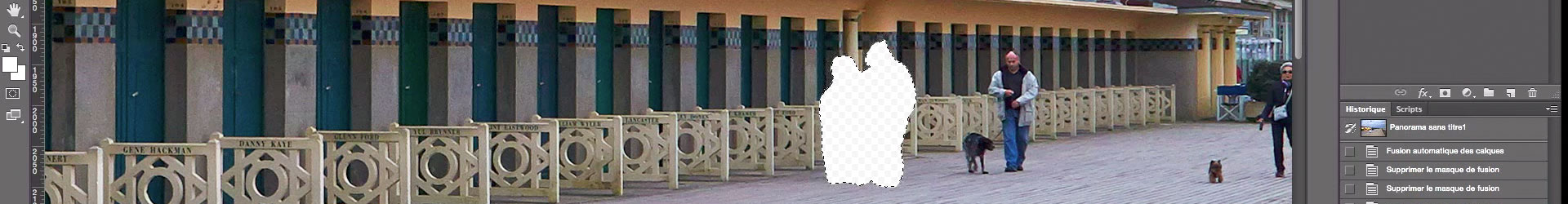 Nous faisons une petite sélection avec l’outil lasso de Photoshop des piétons que l’on veut effacer.